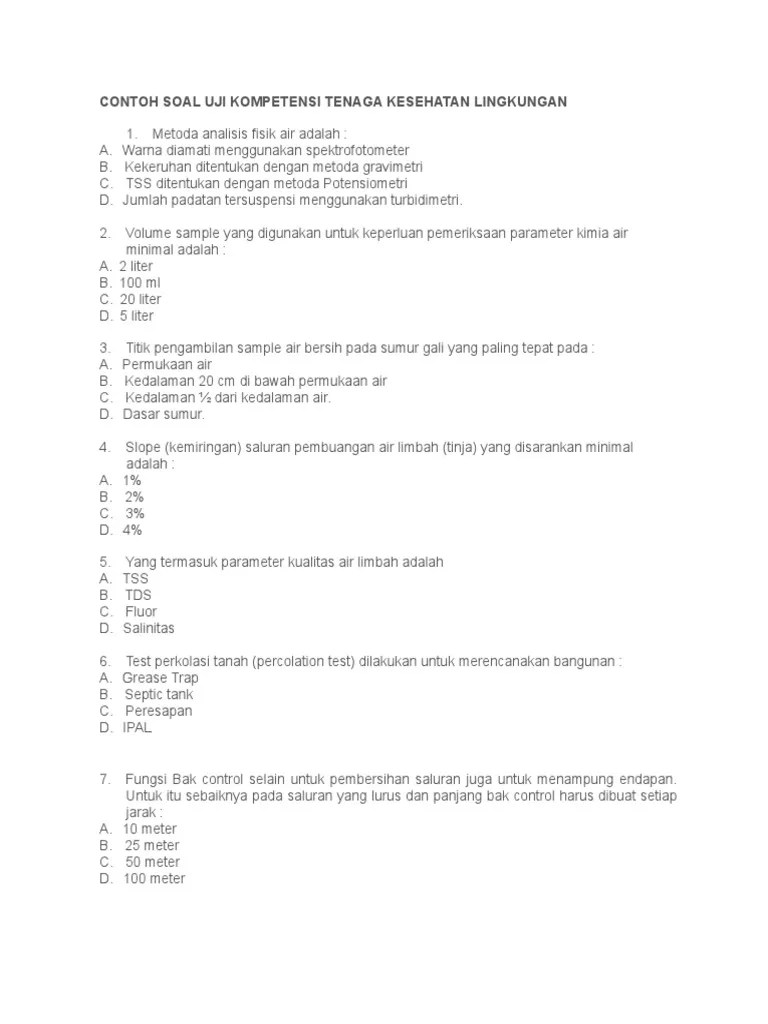 Program pelayanan dasar kesehatan 5. Hy teman teman ini adalah soal skb kementerian lingkungan hidup dan kehutanan yang aku ingat pada saat aku tes cpns. soal soal ujian sertifikasi ahli k3 pengetahuan dasar keselamatan kesehatan kerja halo guest berikut saya informasikan kembali seputar soal soal ujian tes atau mungkin soal tray out sertifikasi ahli k3 umum yang pernah saya ikuti dan semoga bisa menjadi referensi belajar. Anggun prima gilang rupaka21080111400051 uas hukum lingkungan nama : Materi dasar kesehatan lingkungan pertanyaan tentang kesehatan lingkungan, kesehatan lingkungan adalah bidang ilmu yang mempelajari bagaimana lingkungan mempengaruhi kesehatan manusia dan penyakit lingkungan dalam konteks ini berarti hal hal di lingkungan alam seperti udara air dan tanah dan juga semua fitur fisik kimia biologis dan sosial di.